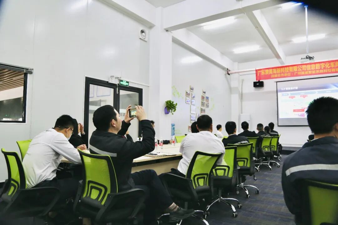 林总要求全体澳美高新各部门要全力配合,全程参与,和速威智能一起完成这个非常重要的信息数字化车间项目。站在数字化转型的风口浪尖,我们希望通过信息数字化车间帮助我们,以最快的速度实现生产现场综合管理,实现共赢!