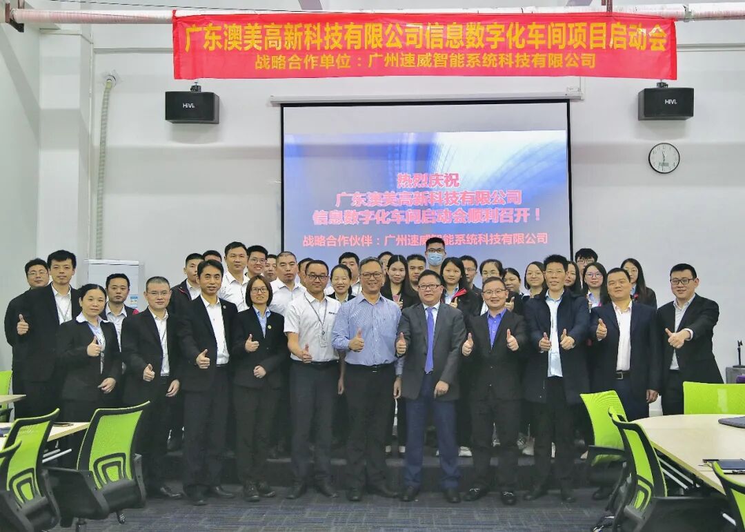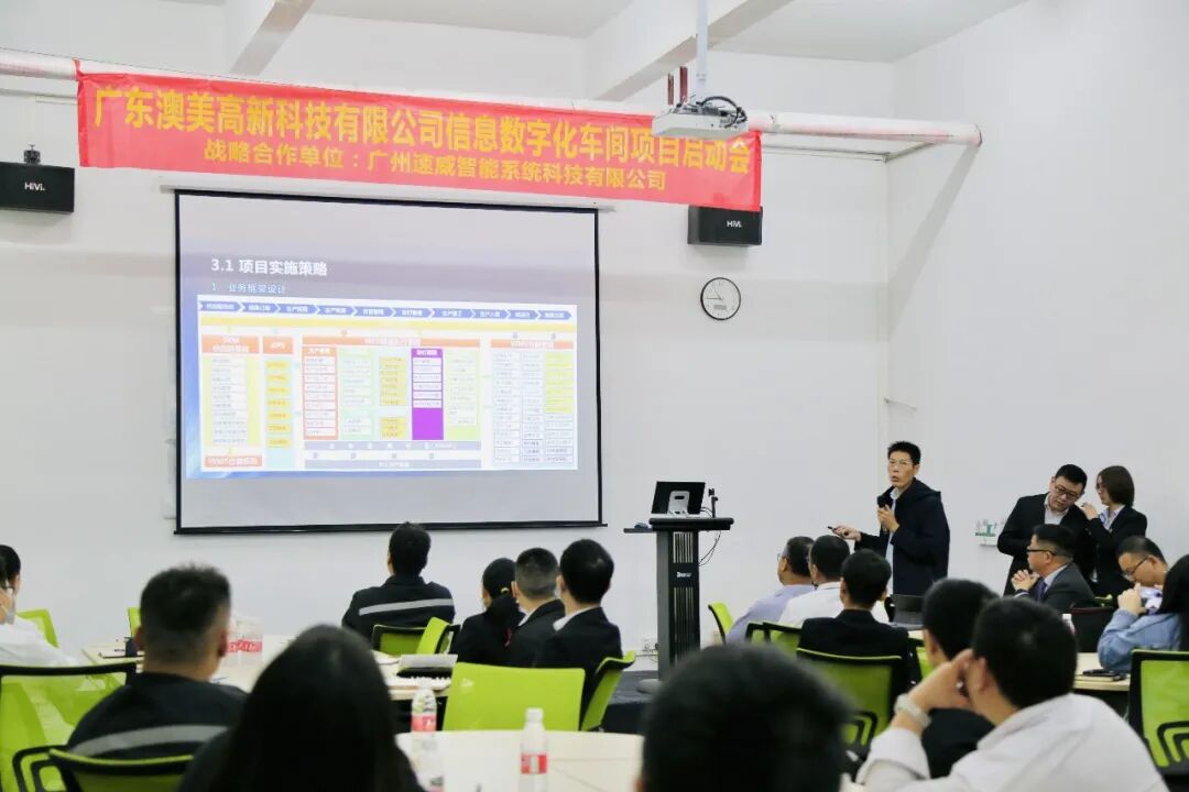 近日,广东澳美高新科技有限公司(简称“澳美高新”)携手战略合作伙伴——广州速威智能系统科技有限公司(简称“速威智能”)打造信息数字化车间,项目启动会顺利召开!澳美高新总经理林总、项目领导缪总、CIO南总、项目经理陈经理、项目管理赵经理、各IT、技术、生产制造、品质、采购、PMC、销售部门关键负责人及各部门关键执行人员,速威智能总经理郭总、业务总监梁总、及速威智能其它项目团队成员共同出席了本次项目动员大会。